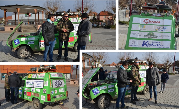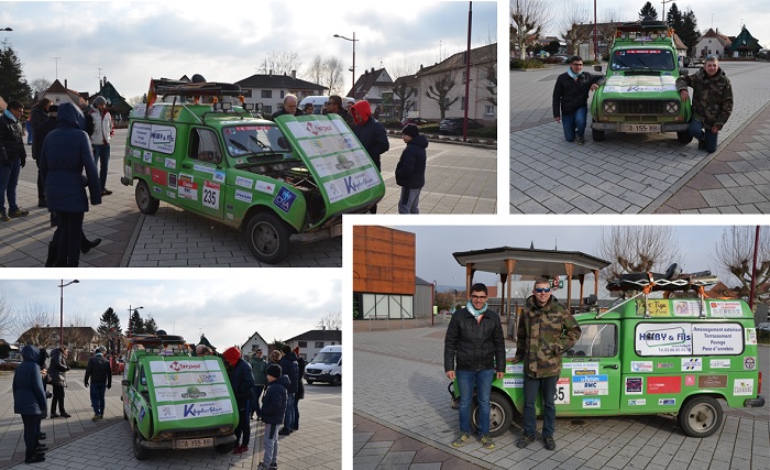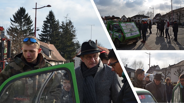 Un sympathique comité d'accueil,- familles, amis, sponsors, presse -, a chaleureusement salué l'arrivée de l'équipage Maxime CUNY et Benoît GUTH, ce mardi matin, vers 9 heures 30, sur la place du Général De Gaulle à Soultz-sous-Forêts.