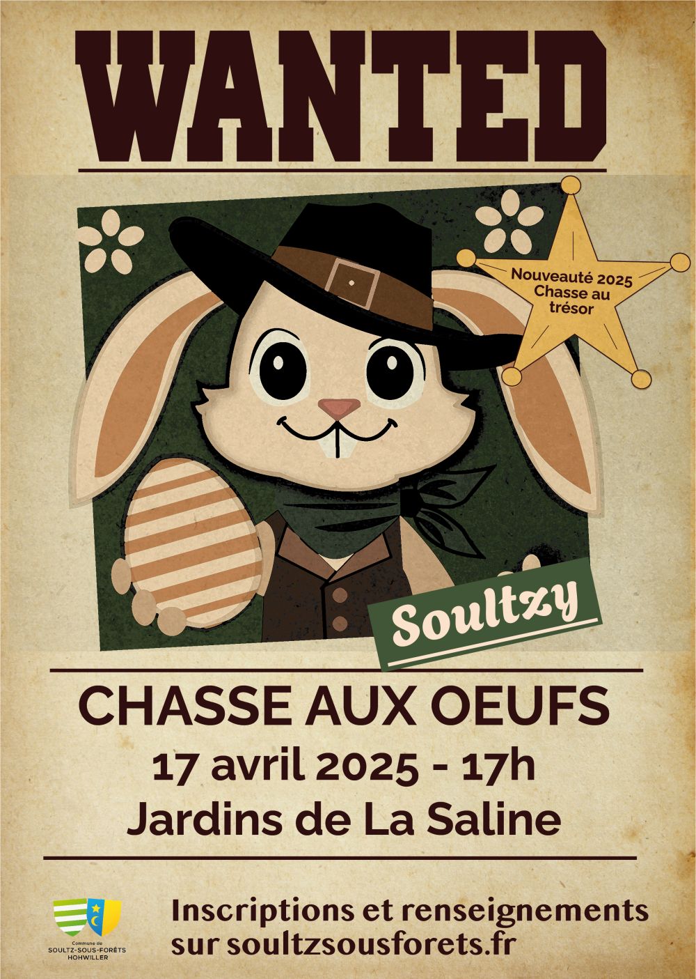 La Ville de Soultz-sous-Forêts organise une chasse aux œufs et une chasse au trésor le jeudi 17 avril 2025 à partir de 17h, à l'occasion de la fête de Pâques, dans les Jardins de La Saline.