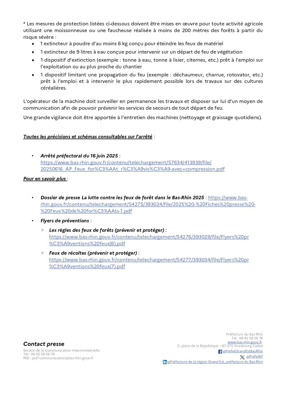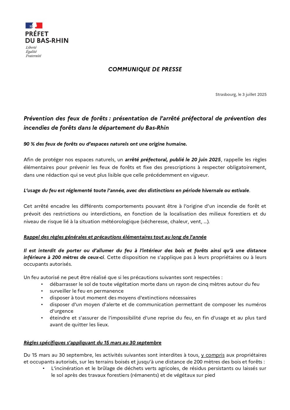 Communiqué de presse - Prévention des feux de forêts dans le département du Bas-Rhin