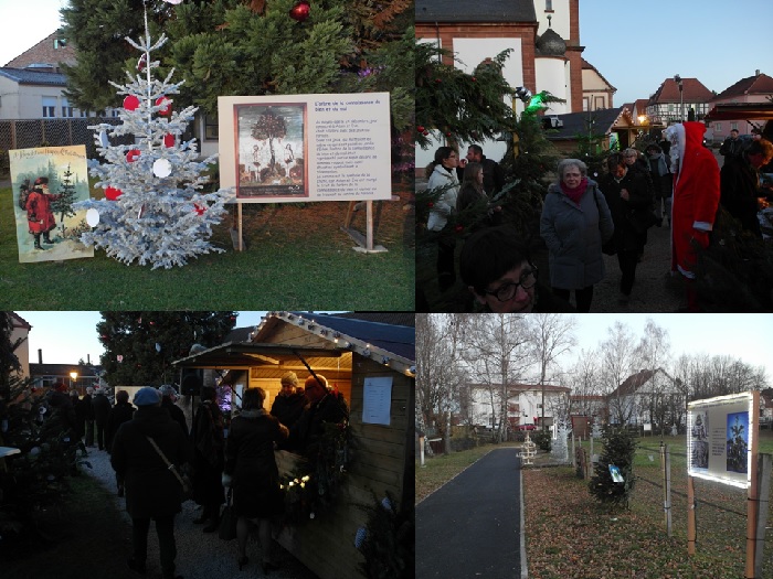 Le chemin de l'arbre de Noël, avec les décorations du périscolaire et des TAP'S, et le marché d'ACXION'S Noël