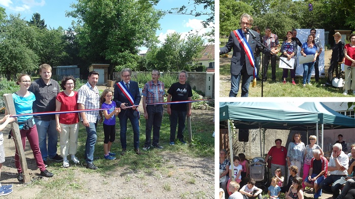 La cérémonie a débuté avec le traditionnel coupé de ruban qui a réuni le maire, quatre jardiniers, le personnel enseignant et des représentants des élèves.