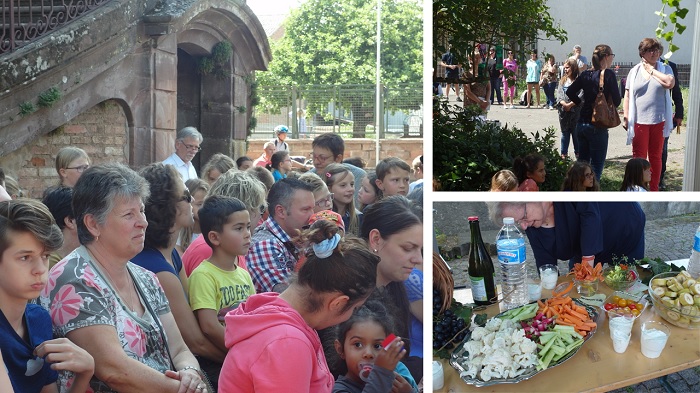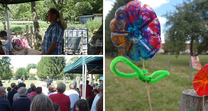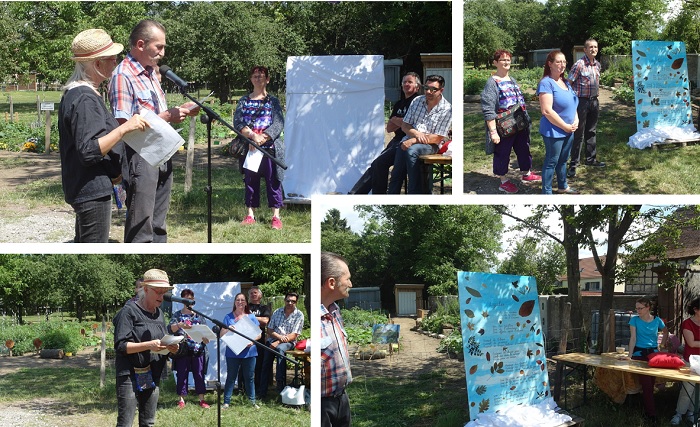Pour donner toute son ampleur à l'inauguration Catherine et les membres de Crocultur' ont ensuite décliné les thèmes illustrant la solidarité inhérente à ce type de réalisation et déclamé un poème de Madame Diemer, poème qui a été reproduit sur un tableau dévoilé en fin de cérémonie.