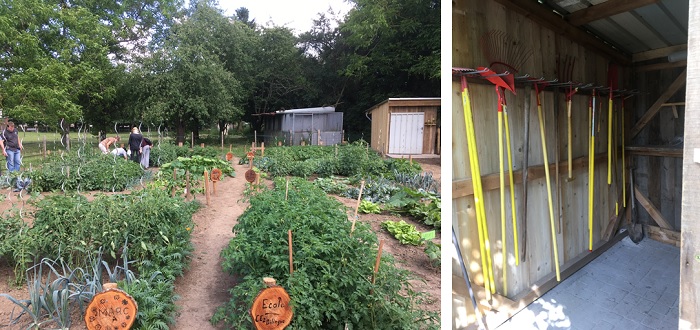Le maire a en ensuite pris la parole pour retracer l'historique de ce jardin solidaire qui a dû enjamber plusieurs haies : sa première tentative d'implantation, ratée, rue de la Bergerie, site dont il a tout de même gardé le nom ; son atterissage sur le lieu actuel, loupé dans un premier temps par manque de jardiniers, puis à cause de la météo ; et enfin son décollage, réussi, en 2017 pour déboucher sur le jardin actuel. In fine une belle réussite que nous devons à Catherine, la vice-présidente du CCAS, à Michèle et à Claire, représentantes de la commune au CCAS, à Joseph, l'ordonnateur du jardin, à Roland, le concepteur de l'abri, et évidemment aux jardiniers. Des jardiniers qui comptent aussi dans leurs rangs des classes de l'école élémentaire qui ont planté deux carrés !