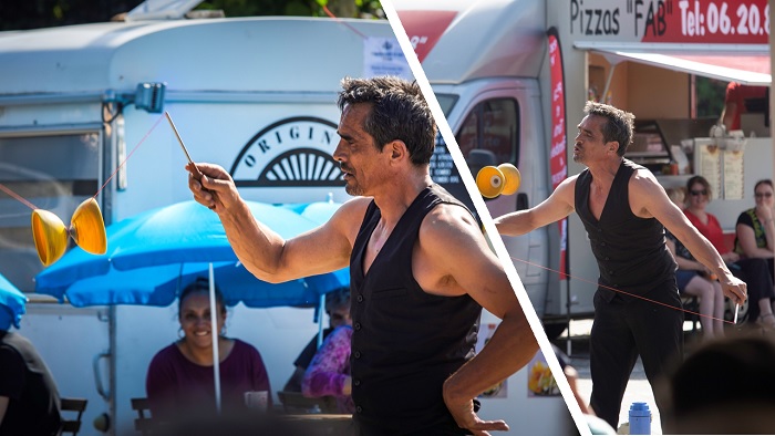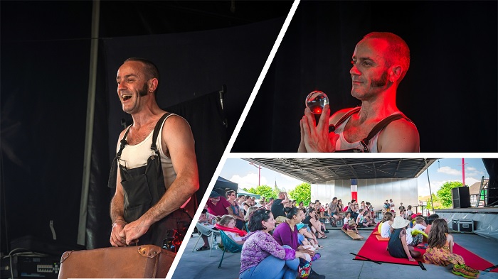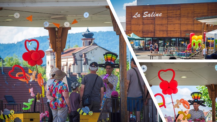 Dimanche le spectacle a été permanent, de 12 heures à 18 heures, avec le groupe de musique Bal'Us'Trad, le Radis Noir qui a mis l'ambiance, le spectacle Gang de balles, mais aussi la structure gonflable, les jeux de bois, les sculptures de ballons, et la fresque géante à la craie.