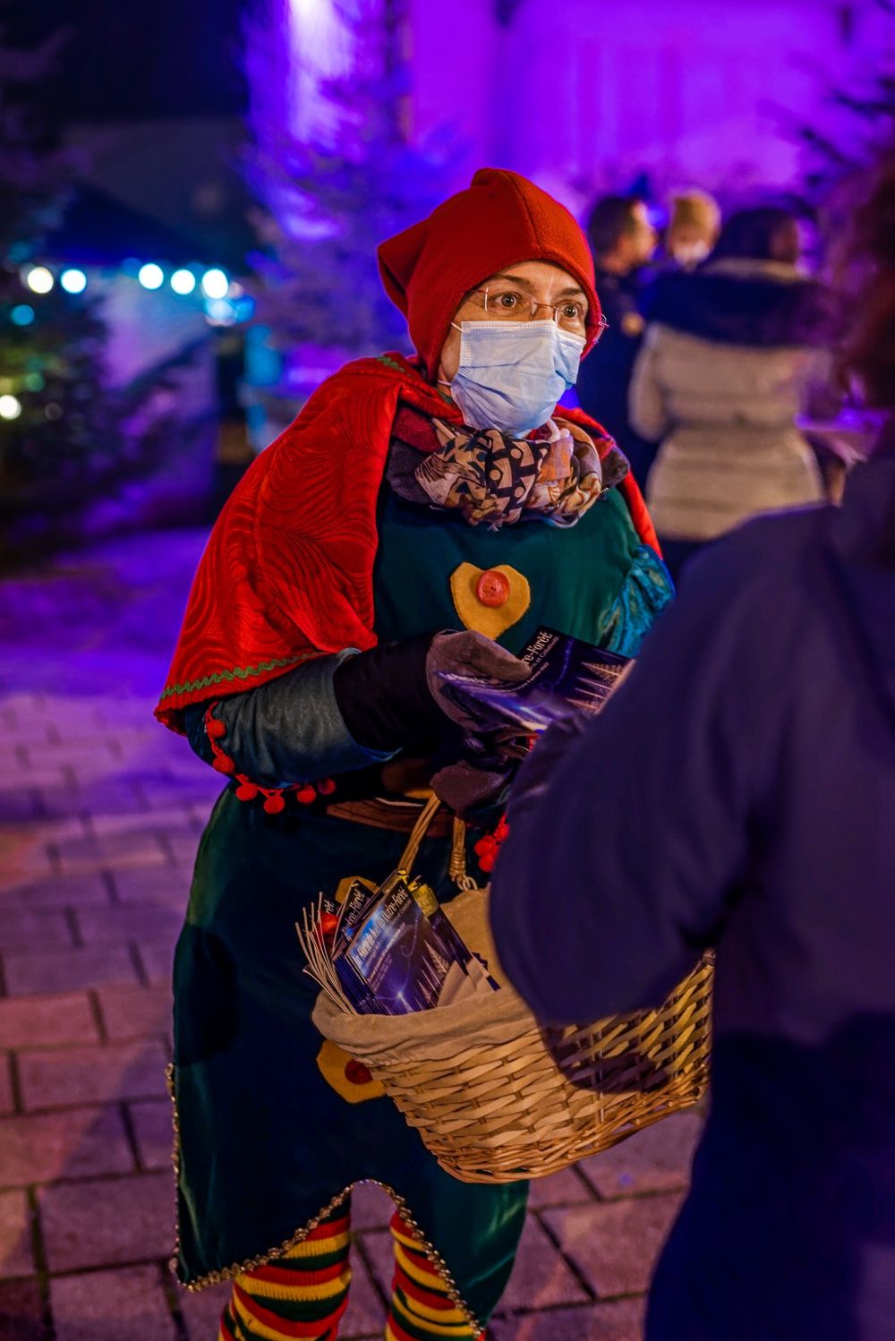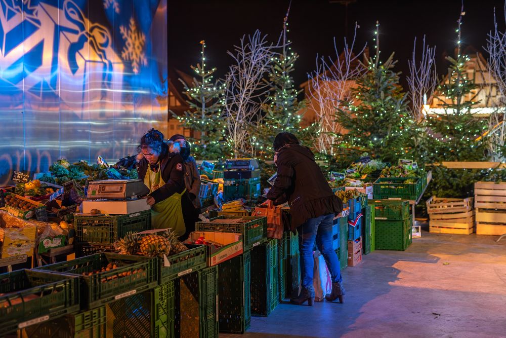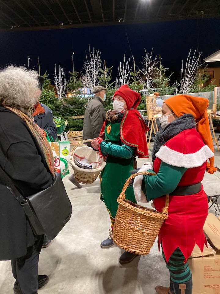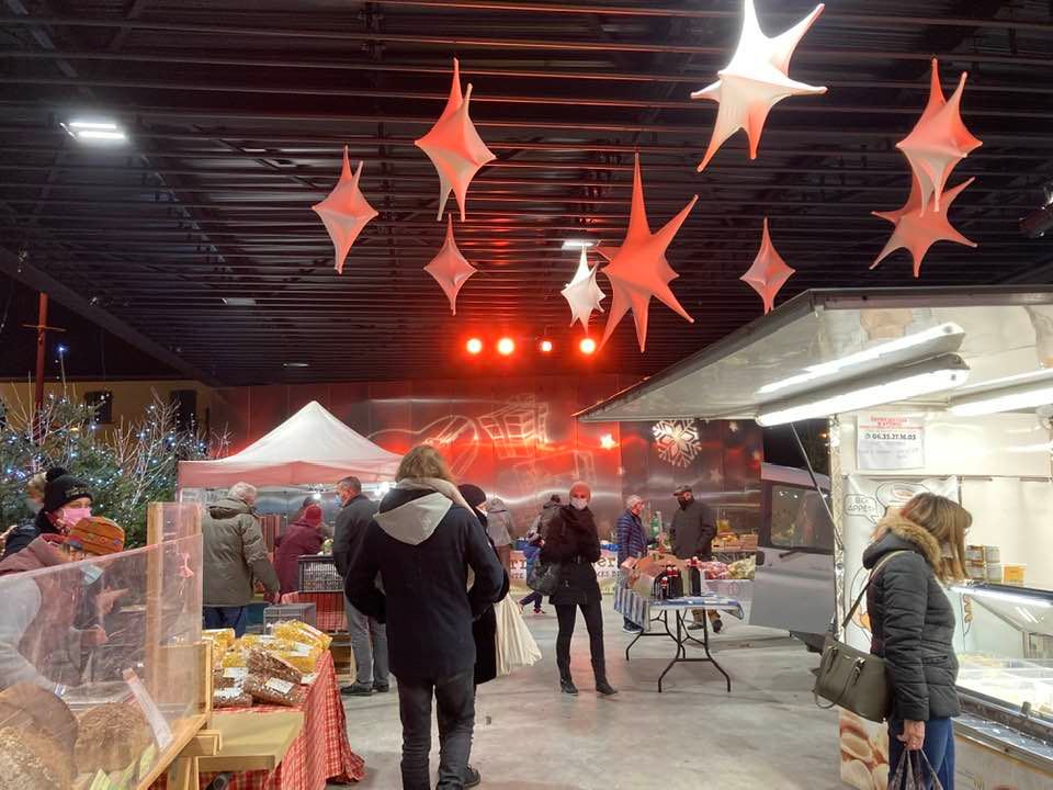En ce jour de marché hebdomadaire, l'ambiance de Noël accopagne commerçants et visiteurs. Tout au long de la soirée, de joyeux lutins ont déambulé dans les allées pour offrir des chocolats. Le brasero a repris sa place pour pouvoir se réchauffer au coin du feu.
