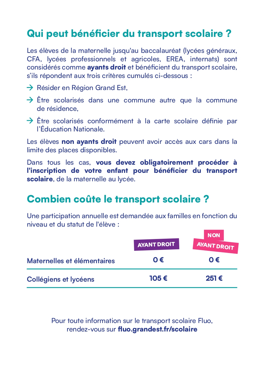 Inscription OBLIGATOIRE aux transports scolaires pour tous les élèves de la maternelle jusqu'au baccalauréat (CFA, lycées généraux, lycées professionnels et agricoles, EREA, internats).